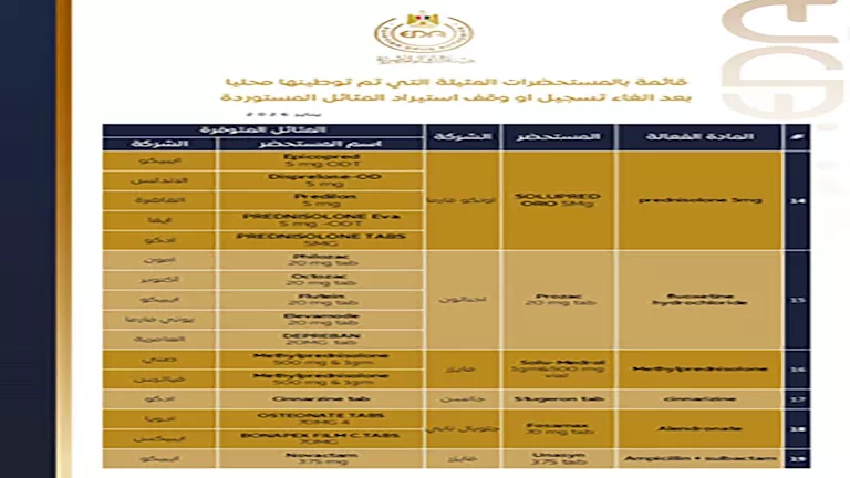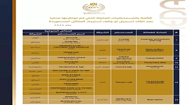 كشفت قائمة رسمية حديثة صادرة عن هيئة الدواء المصرية، عن توطين بدائل محلية لـ 31 مستحضرًا دوائيًا، بعد إلغاء تسجيلها أو وقف استيراد المثائل المستوردة لها، في خطوة تستهدف تعزيز الأمن الدوائي وضمان توافر الأدوية الحيوية بالسوق المصرية.