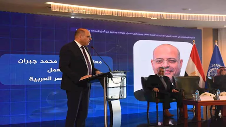 وأكد وزير العمل، في كلمته، أن قانون العمل الجديد رقم 14 لسنة 2025، الذي صدق عليه الرئيس عبدالفتاح السيسي بعد حوار اجتماعي موسّع شاركت فيه كافة الأطراف المعنية ومنظمة العمل الدولية، يُجسّد فلسفة الدولة المصرية في تنظيم سوق العمل باعتباره ركيزة أساسية للتنمية الشاملة والاستقرار الاجتماعي والنمو الاقتصادي المستدام.