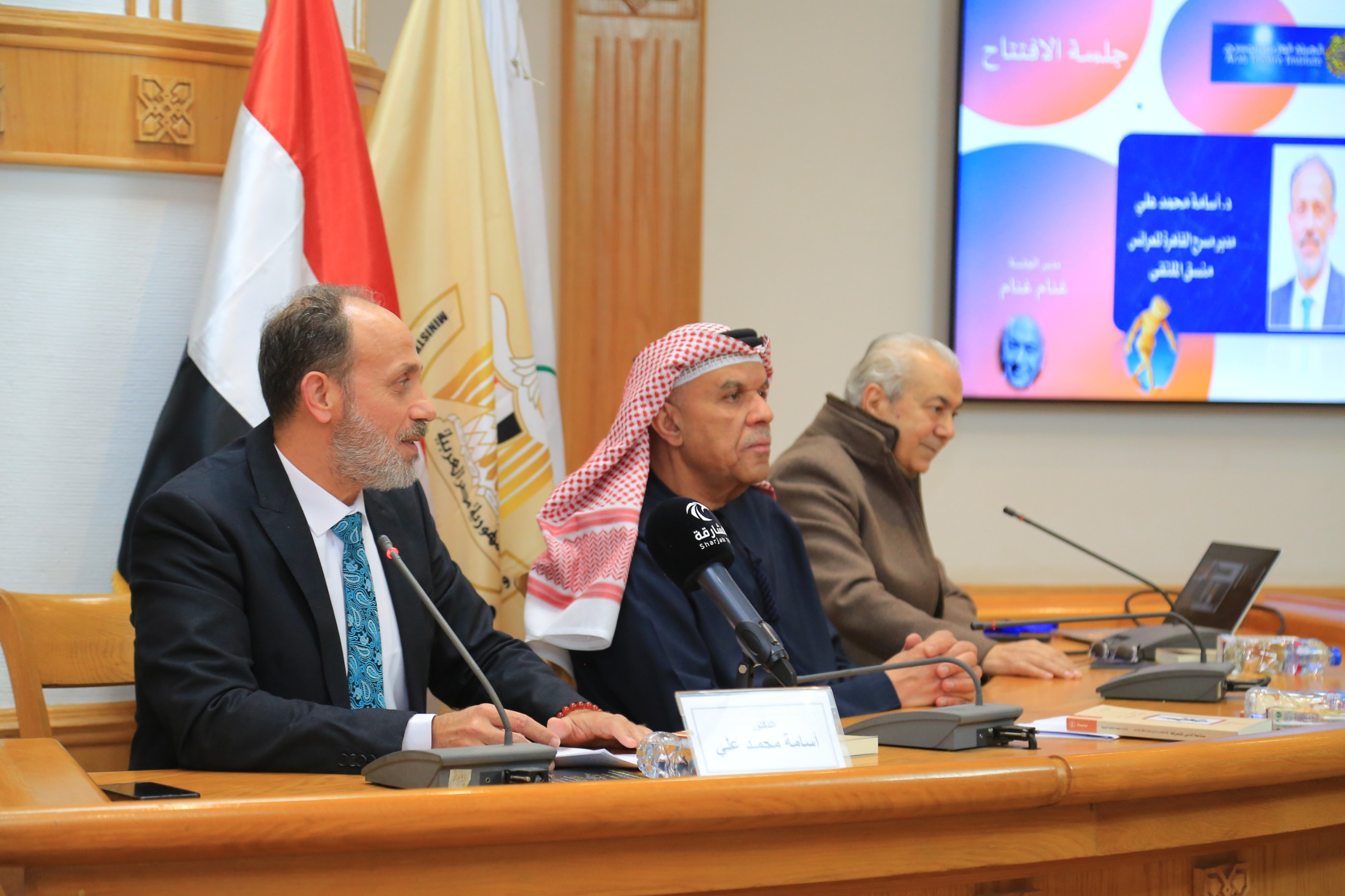 وأضاف : اسمحوا لي في هذا الصباح أن أنقل لكم تحيات صاحب السمو الشيخ الدكتور سلطان بن محمد القاسمي، عضو المجلس الأعلى لاتحاد الإمارات العربية المتحدة، حاكم الشارقة، الرئيس الأعلى للهيئة العربية للمسرح، وأنقل لكم تمنياته للجميع بتقديم الأفضل والأميز، وهو الذي تابع فعاليات ونجاح الدورة 16 من مهرجان المسرح العربي التي اختتمت بنجاح كبير قبل خمسة أيام في القاهرة العامرة.