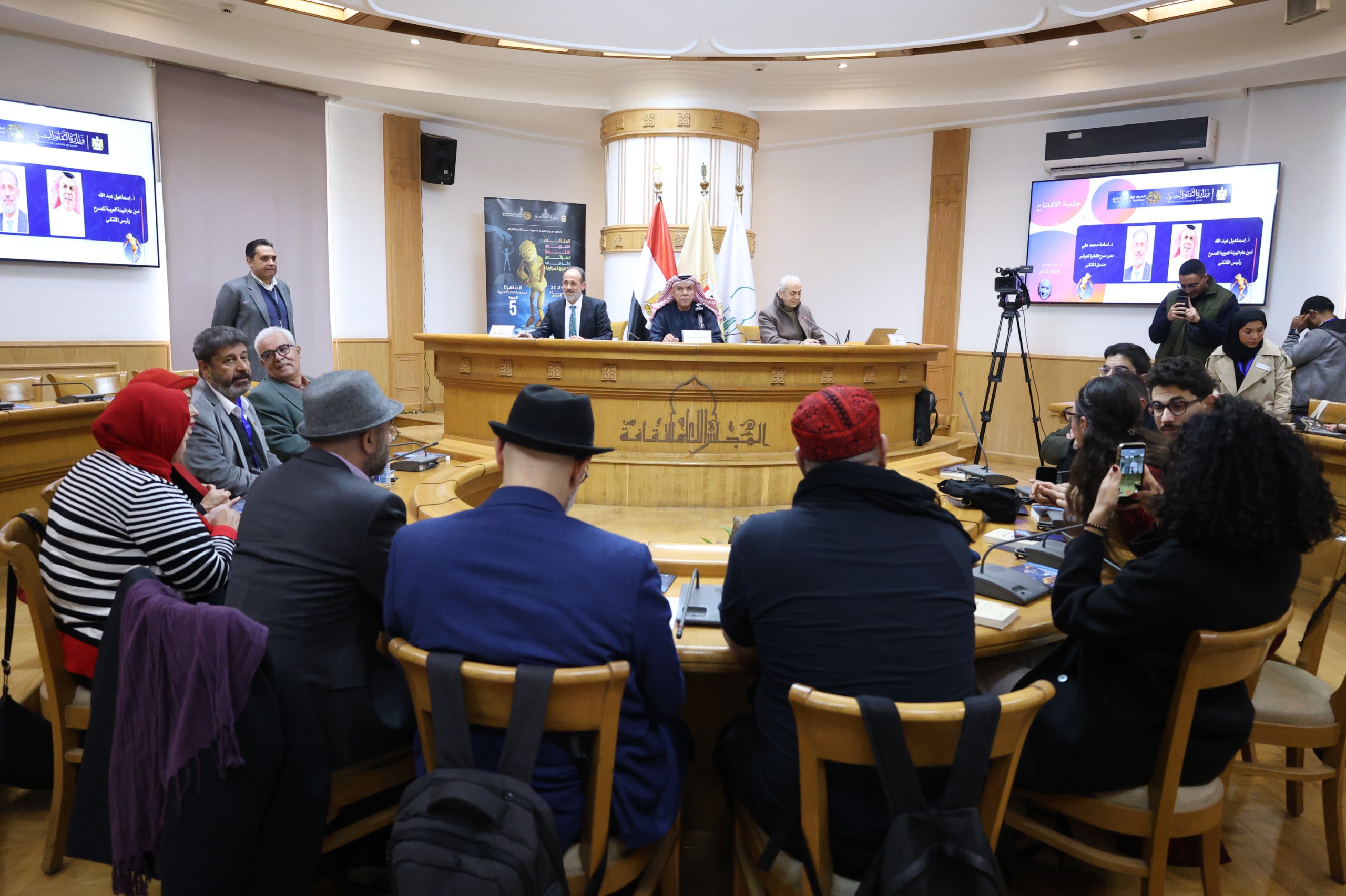 من ناحية ثانية نعتز باحتضان عدة مواقع لفعاليات هذا الملتقى، المجلس الأعلى للثقافة، مسرح الهناجر، مسرح القاهرة للعرائس، مسرح المتروبول، الحديقة الثقافية بالسيدة زينب، وبيت السحيمي، ونوجه التحية للعاملين في هذه المواقع المحتضنة للفعاليات