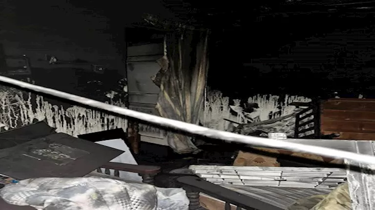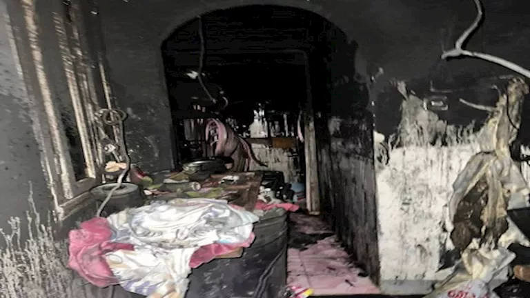 تبين من الصور احتراق الغرف والتهام النيران لحوائط المسكن وكافة الأثاث.