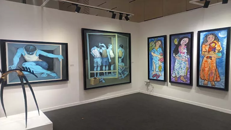 أما الفنان محمد جواد من مساحة "فلك" للفنون من البحرين، فقال: هذه هي المرة الثانية التي نشارك خلالها في "فن القاهرة". والعام الماضي شاركنا بفنانين من الجيل الثاني من البحرين، وهذا العام نشارك بثلاث فنانات من الجيل الأول وفنانة شابة، بالإضافة إلى ضيفنا الفنان السوري الكبير يوسف عبدلكي.