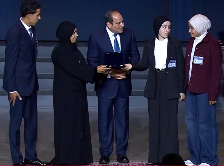 نجل شهيد للسيسي: "بحبك وعايز أسلم عليك".. والرئيس: طبعًا يا علي
