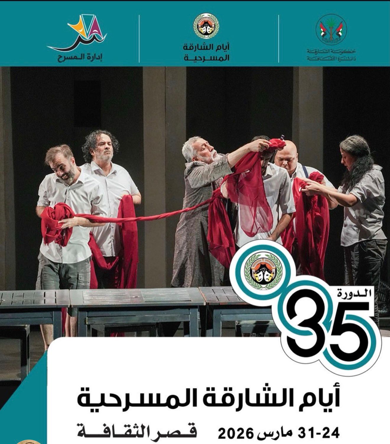 تنطلق الدورة 35 من مهرجان أيام الشارقة المسرحية في الفترة من 24 حتى 31 مارس القادم، ويقام المهرجان تحت رعاية الدكتور سلطان بن محمد القاسمي عضو المجلس الأعلى حاكم الشارقة، وتقيمه إدارة المسرح بدائرة الشارقة، برئاسة الفنان أحمد بو رحيمة، وتقدم عروض المهرجان على مسارح قصر الثقافة وبيت الشعر.