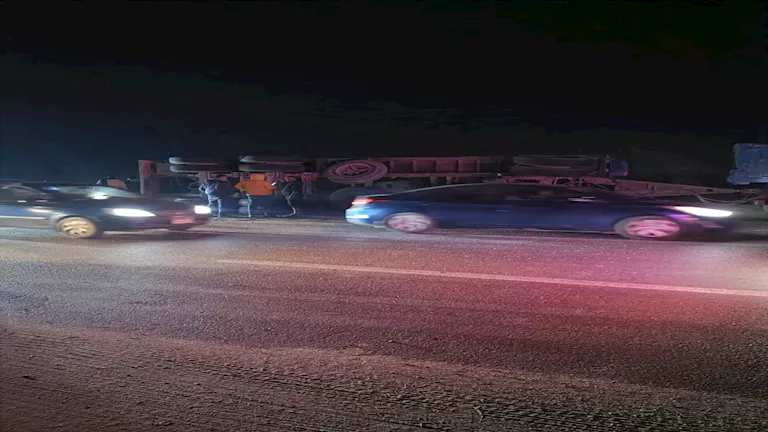وأفاد شهود عيان بأن المقطورة انقلبت نتيجة توقف مفاجئ من السائق لم تُعرف أسبابه حتى الآن، مؤكدين أن حركة السير تواصلت بشكل طبيعي في المسارات المجاورة دون أن يتسبب الحادث في تعطيل كامل لحركة المرور أو حدوث شلل تام.