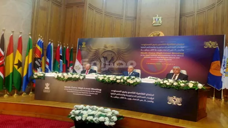 عقدت المحكمة الدستورية العليا، اليوم الخميس، مؤتمرًا صحفيًا عالميًا بمقرها، للإعلان عن فعاليات اجتماع القاهرة التاسع رفيع المستوى لرؤساء المحاكم الدستورية والمحاكم العليا والمجالس الدستورية الأفريقية، والمقرر انعقاده يومي 7 و8 فبراير بالعاصمة الإدارية الجديدة.