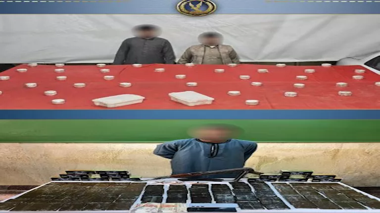 وبحوزتهم:أكثر من نصف طن من المواد المخدرة المتنوعة (حشيش، هيدرو، هيروين، آيس، بودر)، و78 قطعة سلاح ناري (19 بندقية آلية، 47 بندقية خرطوش، 12 فرد خرطوش).