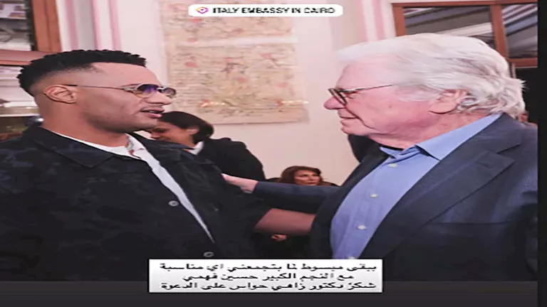 كما وجه رسالة للفنان حسين فهمي، وكتب: "ببقى مبسوط لما بتجمعني أي مناسبة مع النجم الكبير حسين فهمي، شكرًا دكتور زاهي حواس على الدعوة".