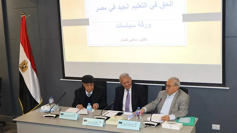 افتتح السفير الدكتور محمود كارم، رئيس المجلس القومي لحقوق الإنسان، أعمال الحلقة النقاشية لمناقشة ورقة سياسات حول "الحق في التعليم الجيد"، والتي عُقدت بالتعاون مع الاتحاد الأوروبي، بمشاركة والدكتور مجدي عبدالحميد، المدير التنفيذي للمشروع الأوروبي، والدكتور سامي نصار، الأستاذ بكلية الدراسات العليا للتربية بجامعة القاهرة، والدكتور حسن الببلاوي، أستاذ علم اجتماع التربية وأمين عام المجلس العربي للطفولة، بحضور عدد من الخبراء والمتخصصين المعنيين بالشأن التعليمي والحقوقي.