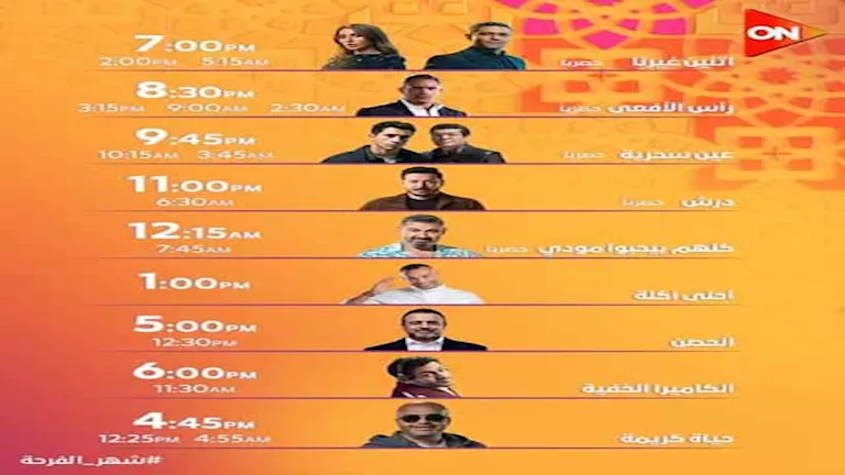 يعرض مسلسل "كلهم بيحبوا مودي" الساعة (١٢ وربع ص)، والإعادة الساعة (٧:٤٥ ص).