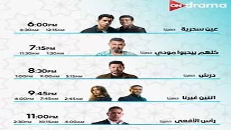يعرض مسلسل "عين سحرية" الساعة (٩:٤٥ م).. والإعادة الساعة (٣:٤٥ ص)، والساعة (١٠ وربع ص)