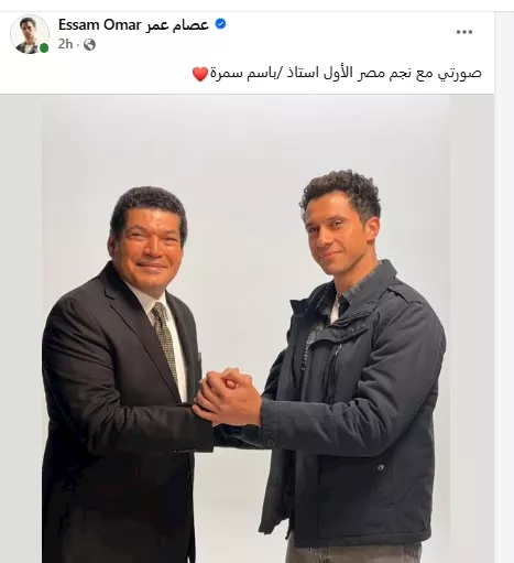 ونشر عصام صورة مع باسم سمرة من كواليس تصوير مسلسل "عين سحرية"، عبر حسابه الرسمي بموقع "فيس بوك": "صورتي مع نجم مصر الأول أستاذ باسم سمرة".