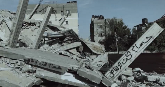 شهدت أحداث الحلقة 6 من مسلسل صحاب الأرض استعراض لبعض مؤلم للأنقاض، وعليها أسماء بعض المفقودين من الأطفال، بالإضافة إلى اختفاء معالم الشوارع والبيوت والمناطق في غزة بسبب القصف.