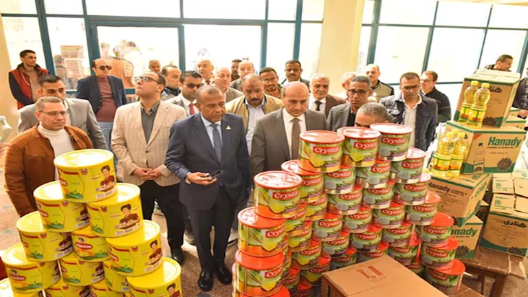 وأوضح المحافظ أن المعرض يضم تشكيلة واسعة من السلع الغذائية الأساسية ومستلزمات الشهر الكريم، تشمل السكر والزيت والأرز والمكرونة والدقيق والبلح ومنتجات الألبان والحلويات والمجمدات وغيرها، لافتًا إلى أن التخفيضات تصل إلى نحو 30% مقارنة بالأسعار السائدة في الأسواق.