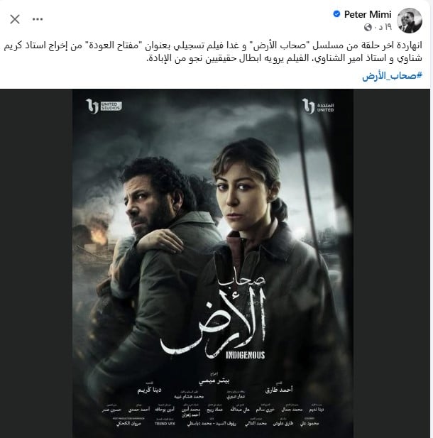 ونشر بيتر ميمي عبر حسابه على "فيس بوك" بوستر المسلسل معلقا عليه: "انهاردة آخر حلقة من مسلسل صحاب الأرض وغدا فيلم تسجيلي بعنوان مفتاح العودة من إخراج أستاذ كريم شناوي وأستاذ امير الشناوي، الفيلم يرويه أبطال حقيقيين نجو من الإبادة".