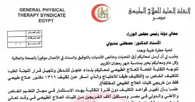 نقيب العلاج الطبيعي يخاطب رئيس الوزراء لإعادة النظر في قواعد التكليف