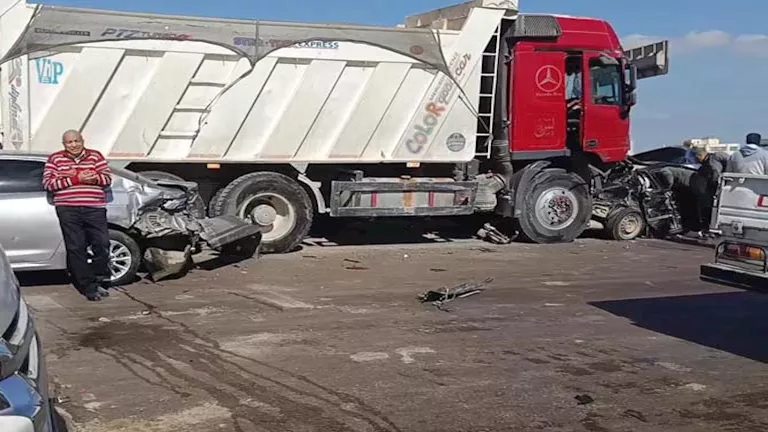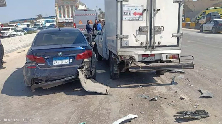 شهد طريق الإسكندرية – القاهرة الصحراوي، اليوم الثلاثاء، حادث تصادم بين 13 سيارة أمام مفارق العجمي، ما أسفر عن إصابة 5 مواطنين، وارتباك حركة المرور.