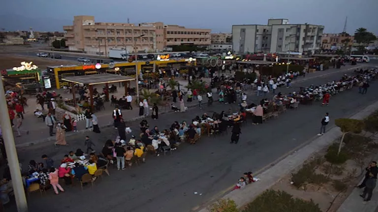 وشهد الإفطار الجماعي حضور مئات الأسر، وسط أجواء مبهجة تضمنت عروض تنورة، وتعليق البالونات، مع مشاركة جميع فئات المجتمع، ما أسهم في تعزيز روح الوحدة الوطنية والتكاتف الاجتماعي بين أبناء المدينة.