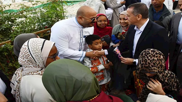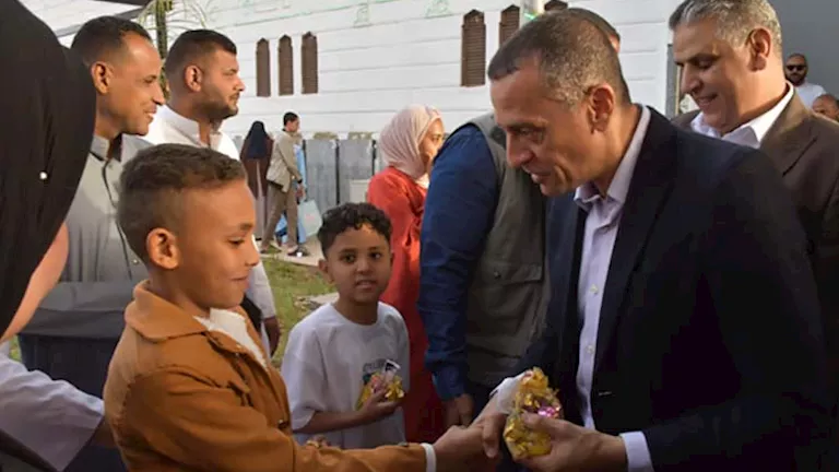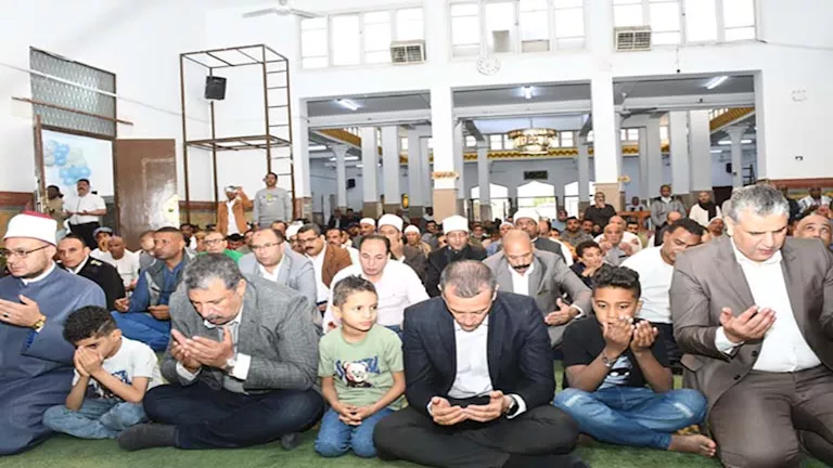 محافظ أسوان يؤدي صلاة عيد الفطر ويوزع العيدية على الأطفال