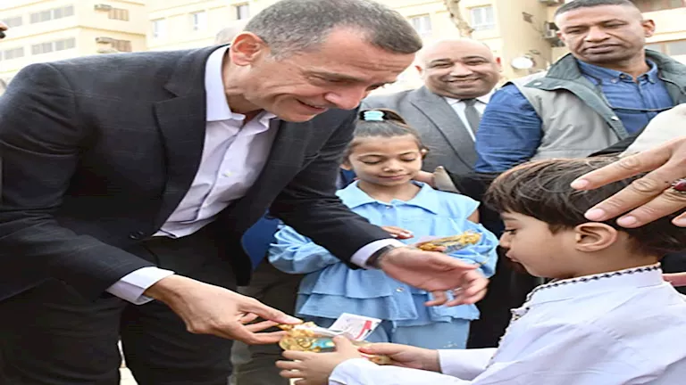 وعقب الصلاة، قام المحافظ بتوزيع كروت ملونة تحمل تهنئة الرئيس عبد الفتاح السيسي، بالإضافة إلى الهدايا والعيدية للأطفال، والتقط الصور التذكارية معهم وأسرهم، ما أضفى جوًا من البهجة والسرور على كورنيش النيل أمام المسجد.