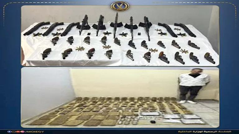وقالت وزارة الداخلية في بيان لها، اليوم السبت، إنه فى إطار مواصلة وزارة الداخلية توجيه الضربات الاستباقية للبؤر الإجرامية جالبي ومتجري المواد المخدرة والأسلحة النارية غير المرخصة؛ فقد أكدت معلومات وتحريات قطاعي (الأمن العام - مكافحة المخدرات والأسلحة والذخائر غير المرخصة) بالتنسيق مع أجهزة الوزارة المعنية قيام بؤر إجرامية بنطاق عدد من المحافظات تضم (عناصر جنائية شديدة الخطورة) بجلب كميات من المواد المخدرة والأسلحة النارية غير المرخصة تمهيداً للإتجار بها.