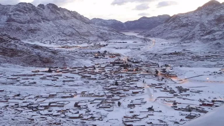 شهدت مدينة سانت كاترين بمحافظة جنوب سيناء، انخفاض شديد في درجات الحرارة، وتساقط أمطار غزيرة أسفرت عن حدوث سيول شديدة بجميع الأودية التابعة للمدينة، أعقبها تساقط الثلوج التي كست الجبال وحولت المدينة إلى قلعة بيضاء.