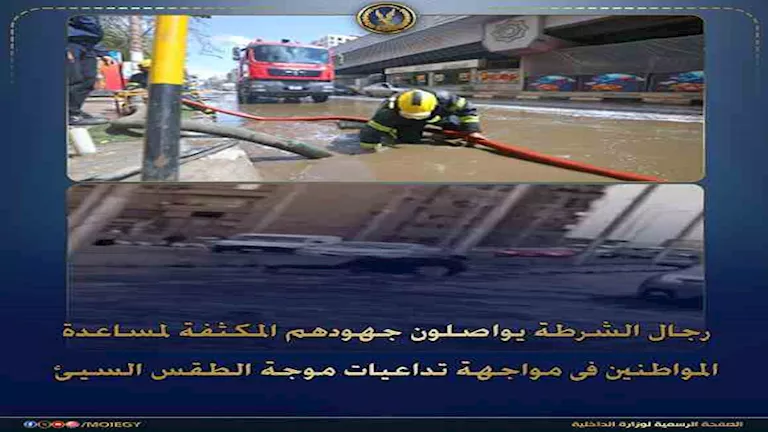 كثفت أجهزة وزارة الداخلية تواجدها في الشوارع والميادين الرئيسية بالمحافظات المتأثرة بالأمطار، لتوفير الدعم اللازم للمواطنين وضمان سلامتهم أثناء تنقلهم، وللحد من أي إعاقة مرورية محتملة نتيجة سوء الأحوال الجوية.