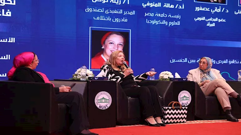 وشهدت الجلسة مشاركة زينة توكل المدير التنفيذي لصندوق "قادرون باختلاف"، والدكتورة محاسن فرغلي رئيسة جامعة مصر الدولية والدكتورة هالة المنوفى رئيسة جامعة مصر للعلوم والتكنولوجيا فيما أدارت الجلسة الأستاذة إنجي بدوي المدير التنفيذي لوحدة تكافؤ الفرص والمساواة بين الجنسين.