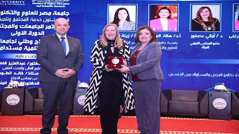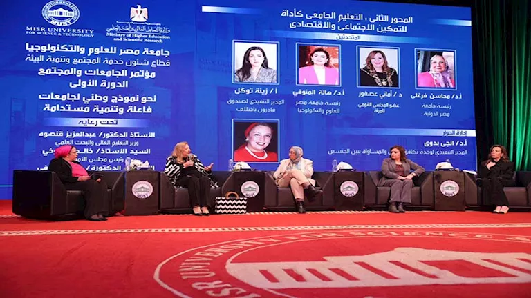 شاركت الدكتورة أماني عصفور عضوة المجلس القومي للمرأة نيابة عن المستشارة أمل عمار رئيسة المجلس في فعاليات الدورة الأولى من مؤتمر "الجامعات والمجتمع" الذي نظمته جامعة مصر للعلوم والتكنولوجيا تحت شعار "نحو نموذج وطني لجامعات فاعلة وتنمية مستدامة".