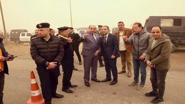 محافظ المنوفية يصل موقع حادث السادات ويتابع نقل الضحايا إلى المستشفى-