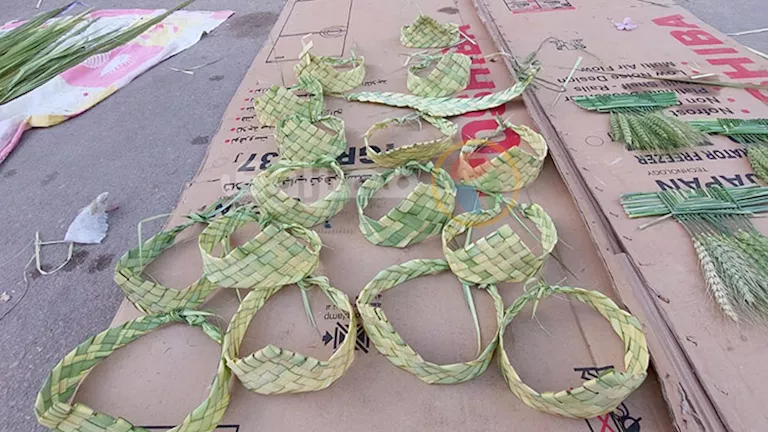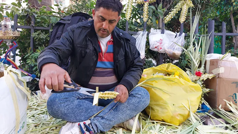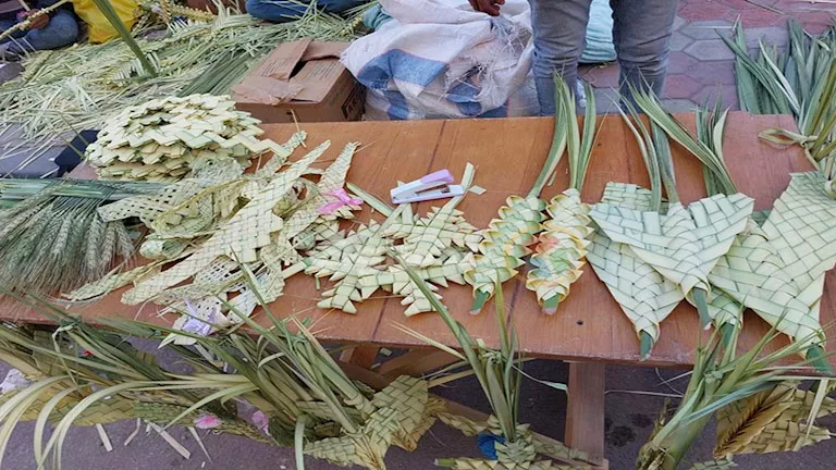 شهدت شوارع الإسكندرية بمحيط الكنائس، اليوم السبت، إقبالًا من المواطنين على شراء المنتجات المصنوعة من سعف النخيل، تزامنًا مع احتفالات "أحد الشعانين".