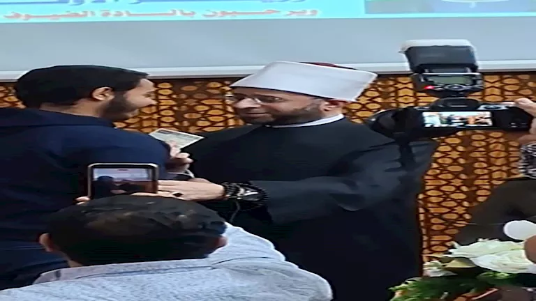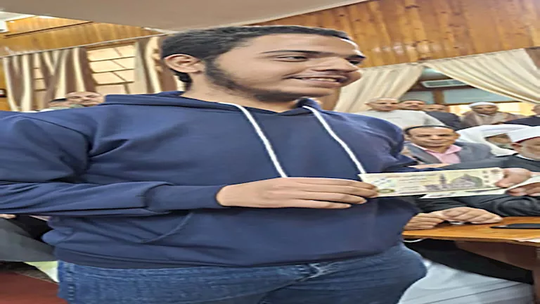 وتمكّن الطالب عبدالله محمد خلف، من كلية التربية بجامعة الأزهر فرع أسيوط، من قراءة الأبيات، فدعاه الوزير للصعود إلى المنصة وتسلم الجائزة المالية تقديرًا لتميزه.