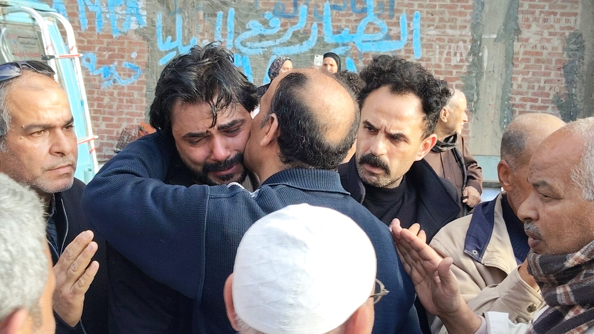 انهيار السيناريست محمود حمدان خلال تشييع جنازة والده بالبحيرة.. صور