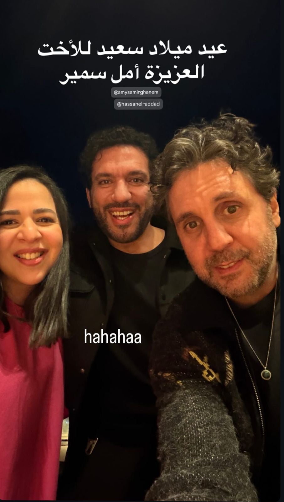 كما نشر الفنان هشام ماجد صورة تجمعه بها، وعلق عليها قائلا: "عيد ميلاد سعيد للأخت أمل سمير"، في إشارة طريفة، حيث اعتاد البعض مناداة إيمي بلقب "نادية"، وكأنه لغز مشترك بينهم.