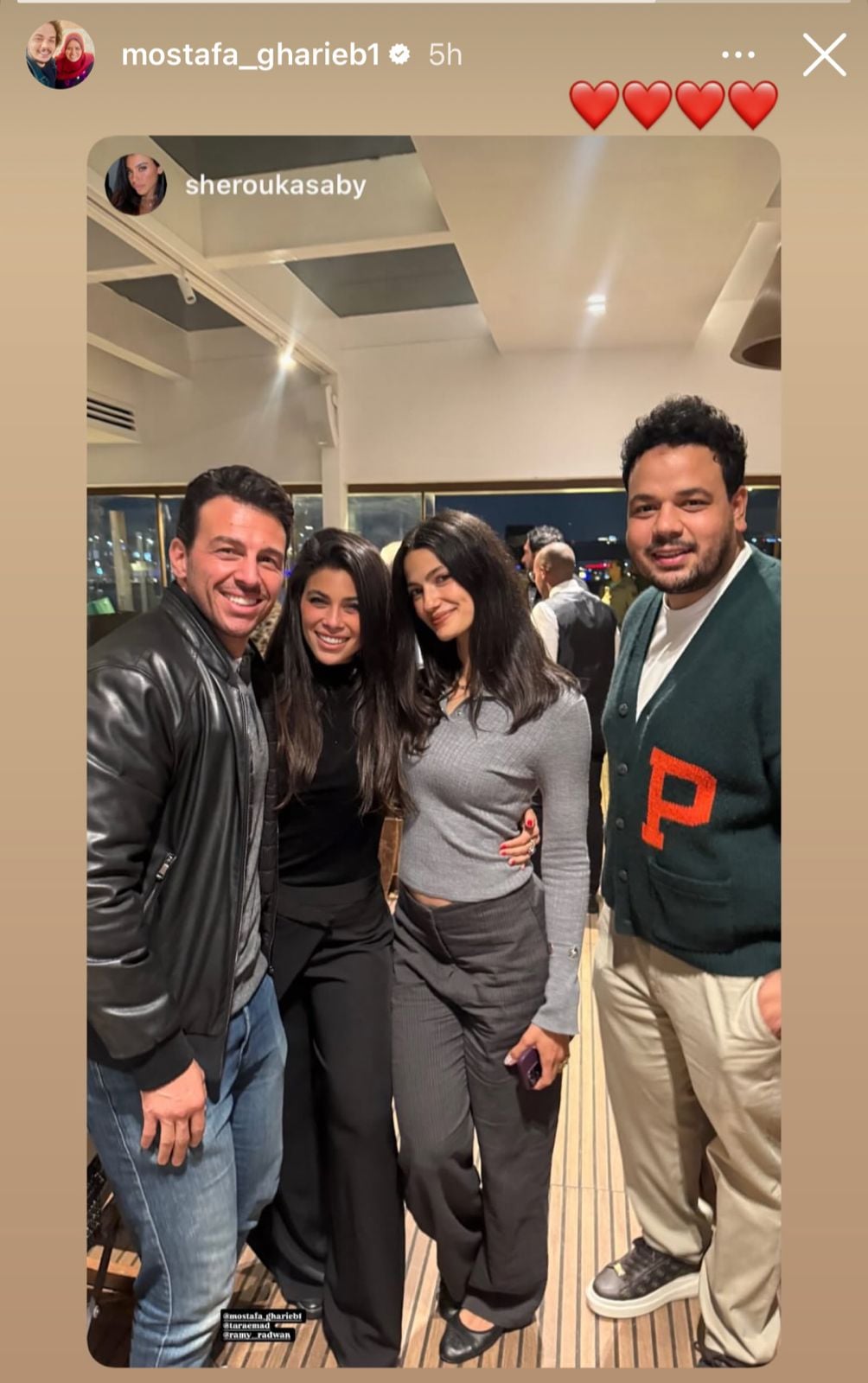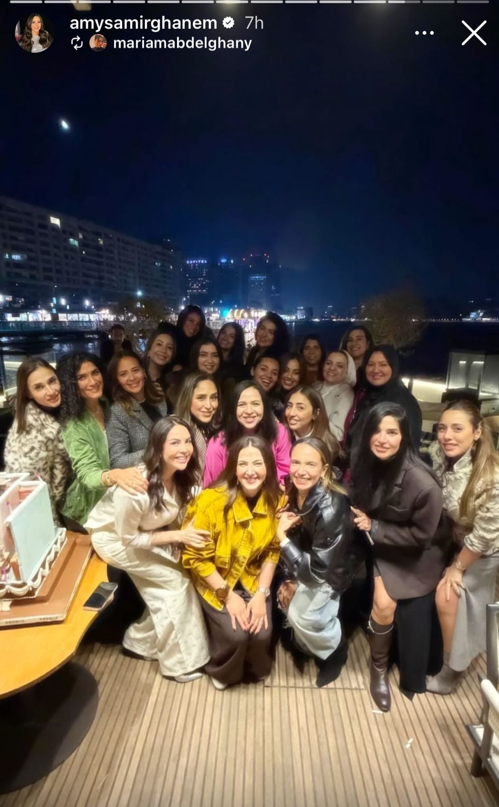 وعلى الصعيد العائلي، حرصت الفنانة دنيا سمير غانم على التواجد بجانب شقيقتها إيمي خلال الاحتفال، إلى جانب الإعلامي رامي رضوان.