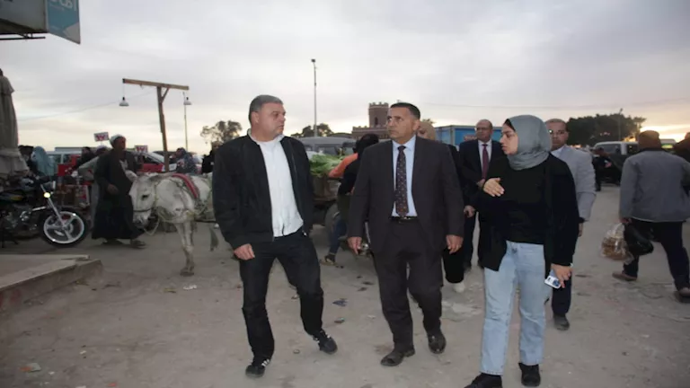 وخلال الجولة، عاين المحافظ التكدسات الناتجة عن الباعة الجائلين والأسواق العشوائية لتجارة الخضار والفاكهة، والتي تعيق الحركة المرورية وتؤثر على المظهر العام للمدينة.