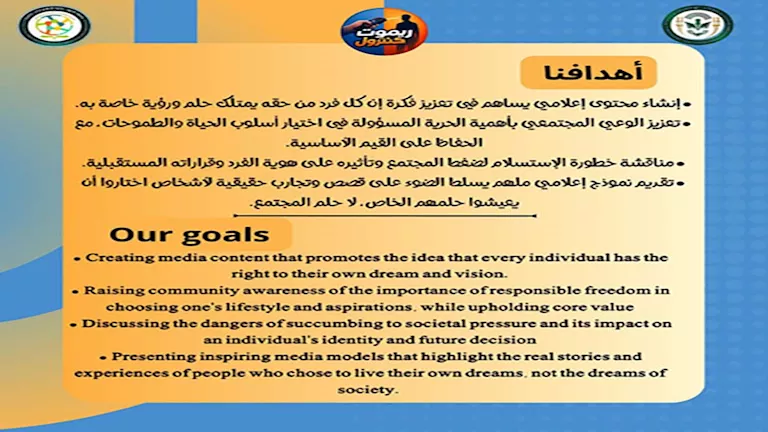 - نشر الوعي بأهمية الحرية المسؤولة في اختيار أسلوب الحياة والطموحات مع الحفاظ على القيم الأساسية.