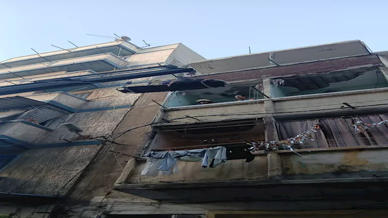أظهرت المعاينة أن العقار مكون من طابق أرضي و3 طوابق علوية، وتبين سقوط سقف الطابق الثالث على الطابق الثاني من الداخل.