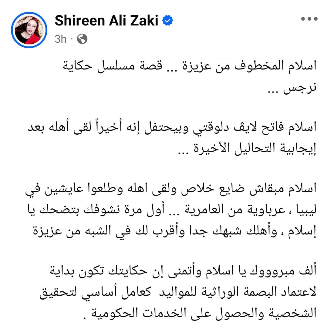وجه رواد مواقع التواصل الاجتماعي الشكر لصناع مسلسل حكاية نرجس وذلك بعدما أعاد المسلسل قصة إسلام المخطوف بطل القصة الحقيقة للواجهة مرة أخرى، خاصة بعدما خرج في بث مباشر ليعلن وصوله لأهله وان نتائج التحاليل أثبت جذوره التي تعود لعائلته الأصلية.