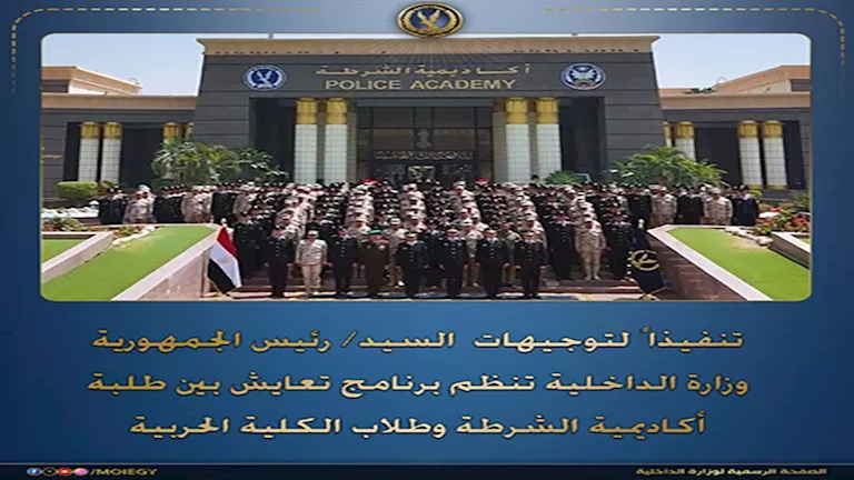 تنفيذاً لتوجيهات الرئيس عبد الفتاح السيسي، رئيس الجمهورية، نظمت وزارة الداخلية برنامجاً متميزاً للمعايشة بين طلاب كلية الشرطة وطلاب الكلية الحربية، وذلك انطلاقاً من الحرص على توحيد المفاهيم التدريبية وترسيخ أطر التواصل بين جناحي أمن الوطن (الشرطة والقوات المسلحة)، بما يضمن إعداد كوادر قادرة على حماية مقدرات الدولة واستقرارها.