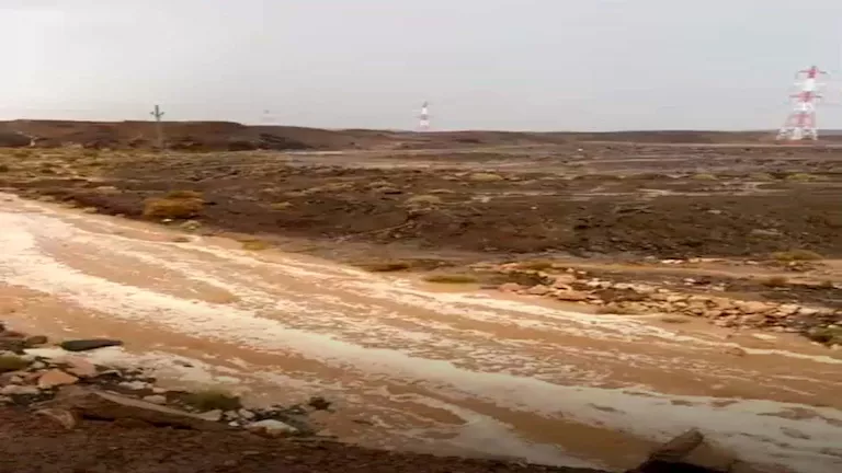 طمأن المسؤولون بأن السيل يسير في مجراه الطبيعي داخل المناطق الصحراوية، دون أن يؤثر على حركة الطرق أو المرور، مؤكدين عدم وجود أي خسائر أو معوقات حتى الآن.