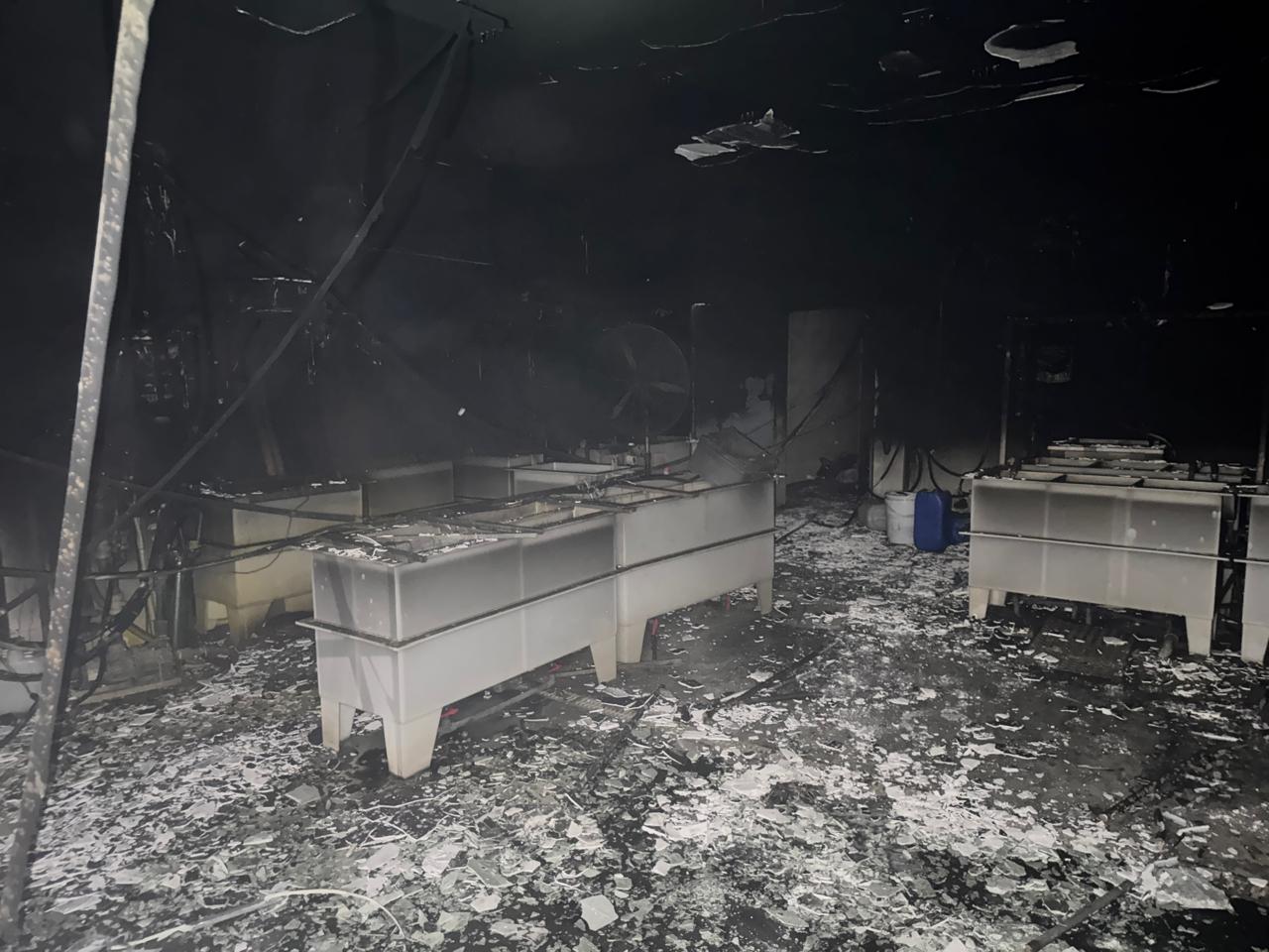 وبالوصول والفحص تبين نشوب حريق بجزء من صالة إنتاج على مساحة 300م²، بالطابق الثالث والأخير بمصنع للمشغولات والإكسسوارات الحريمي، والمكون من طابق أرضي وثلاثة طوابق علوية حبث تبلغ إجمالي مساحة الطابق 1200م²، مقسمة إلى صالتي إنتاج، مساحة كل منهما 600م². وقد شب الحريق في مساحة 300م² بإحدى صالتي الإنتاج بالطابق الثالث والأخير