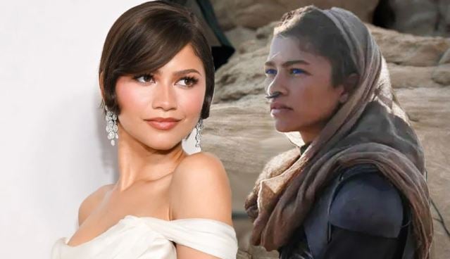 ارتدت زيندايا تصميمًا خاصًا من مجموعة Schiaparelli لخريف وشتاء 2026، حيث جاء اللوك بلون رملي باهت يعكس أجواء الكوكب الصحراوي في الفيلم.