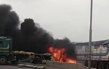 حريق بسيارة نقل على الطريق الدولي الساحلي
