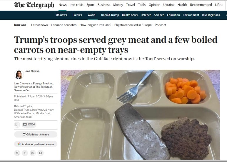 التليجراف تنشر صورا صادمة لفتات طعام يُقدم لجنود الجيش الأمريكى فى حرب إيران
