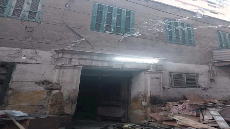 وتبيّن من الفحص أن العقار مكوّن من دور أرضي وطابق أول علوي وصادر له قرار ترميم رقم 195 لسنة 2026، وانهيار سقف إحدى حجرات الطابق الأول على الأرضي.