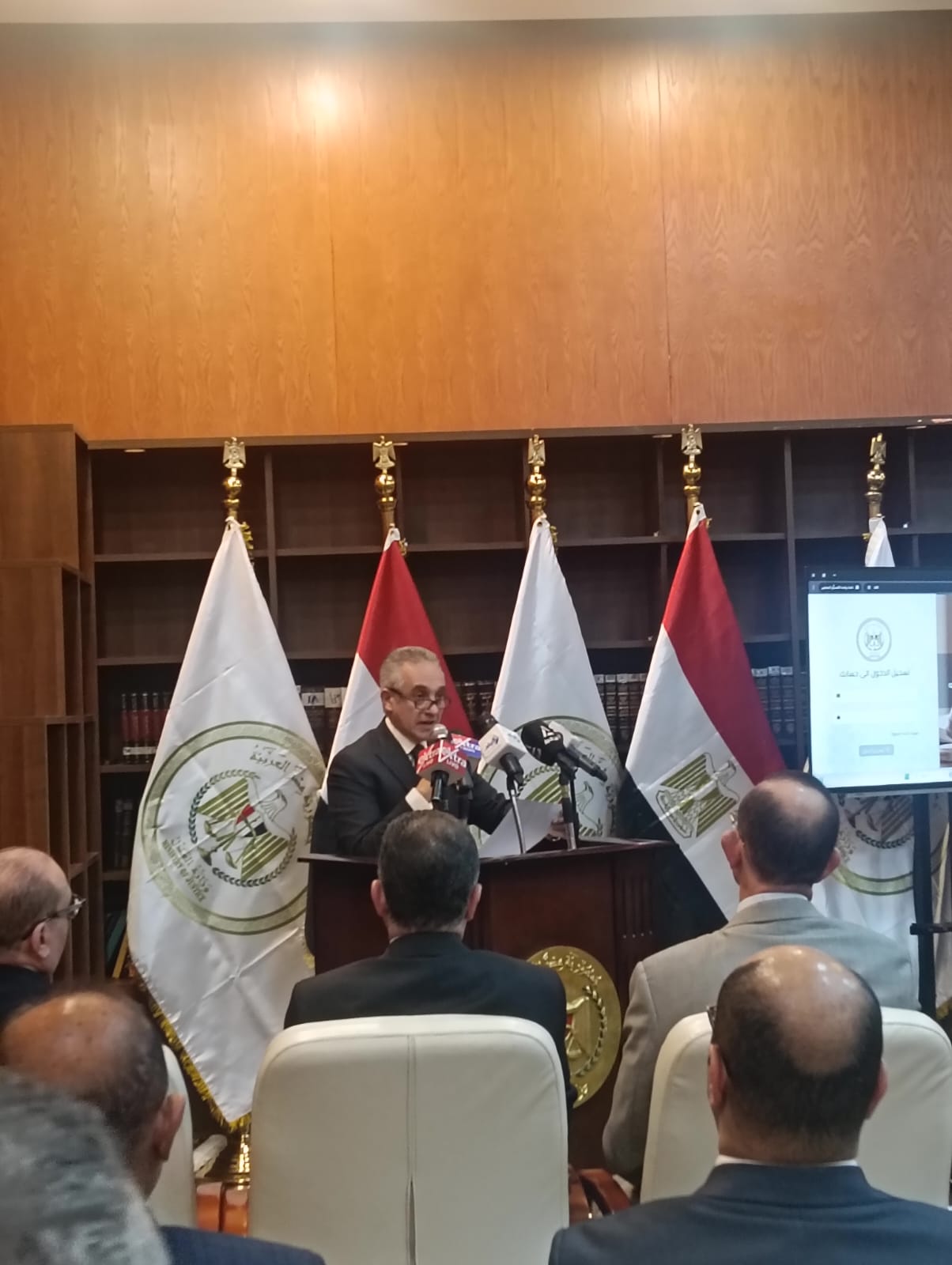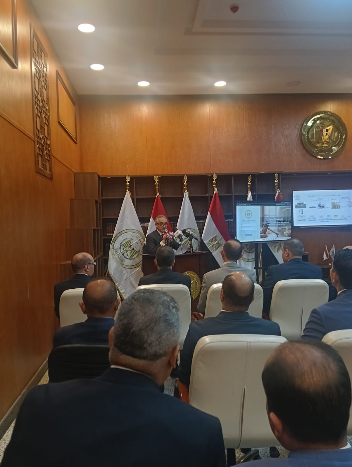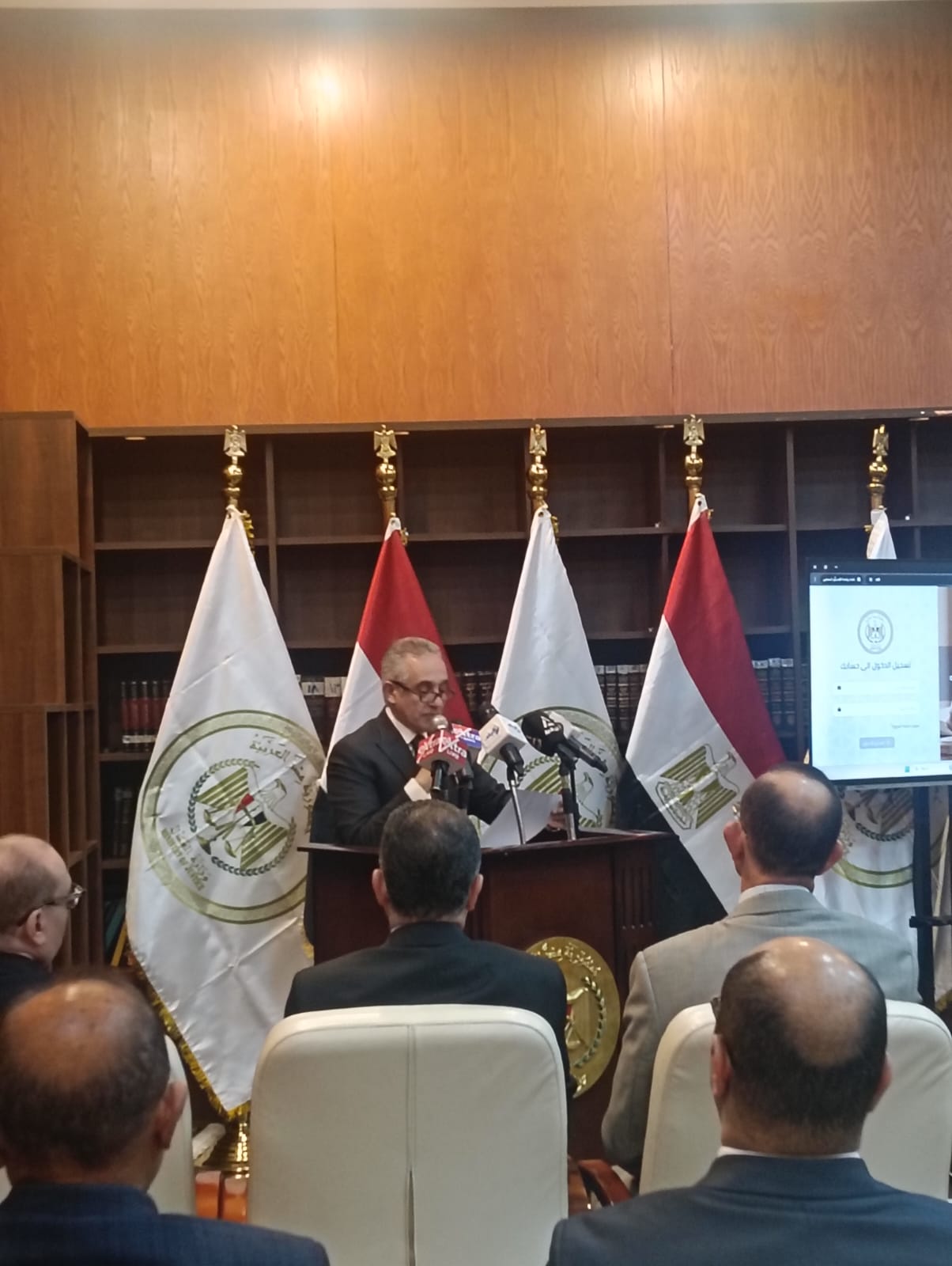 المستشار محمود حلمى الشريف وزير العدل خلال اللقاء