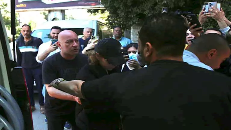وصلت النجمة منة شلبي، منذ قليل، لمسجد الفاروق بالمعادي لتشييع جثمان والدها لمثواه الأخير.