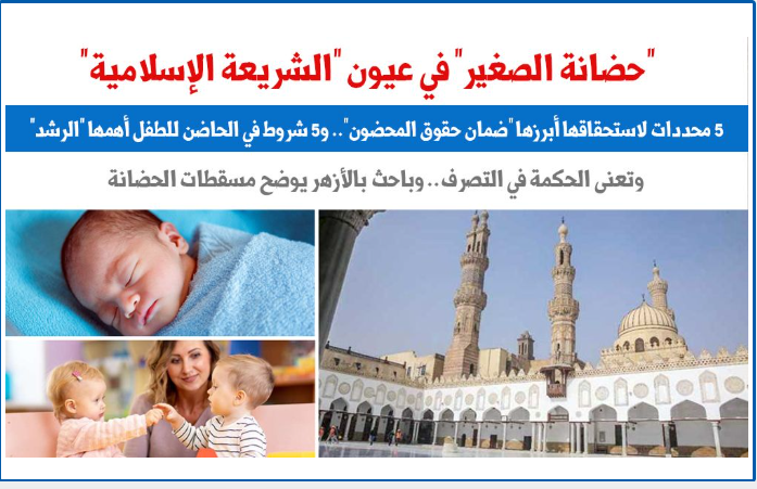رصد موقع "برلماني"، الكمتخصص في الشأن التشريعى والنيابى، في تقرير له تحت عنوان: " حضانة الصغير في عيون الشريعة الإسلامية"، استعرض خلاله حضانة الصغير في الشريعة الإسلامية، وذلك من خلال 5 محددات لإستحقاقها أبرزها "ضمان حقوق المحضون"، و5 شروط في الحاضن للطفل أهمها "الرشد" وتعنى الحكمة في التصرف، خاصة وأن قضية قانون الأحوال الشخصية عادت من جديد وطفت على السطح، ويثيره من جدل حول إشكالية الحضانة وحقوق الآباء في رؤية أبنائهم بعد الطلاق.