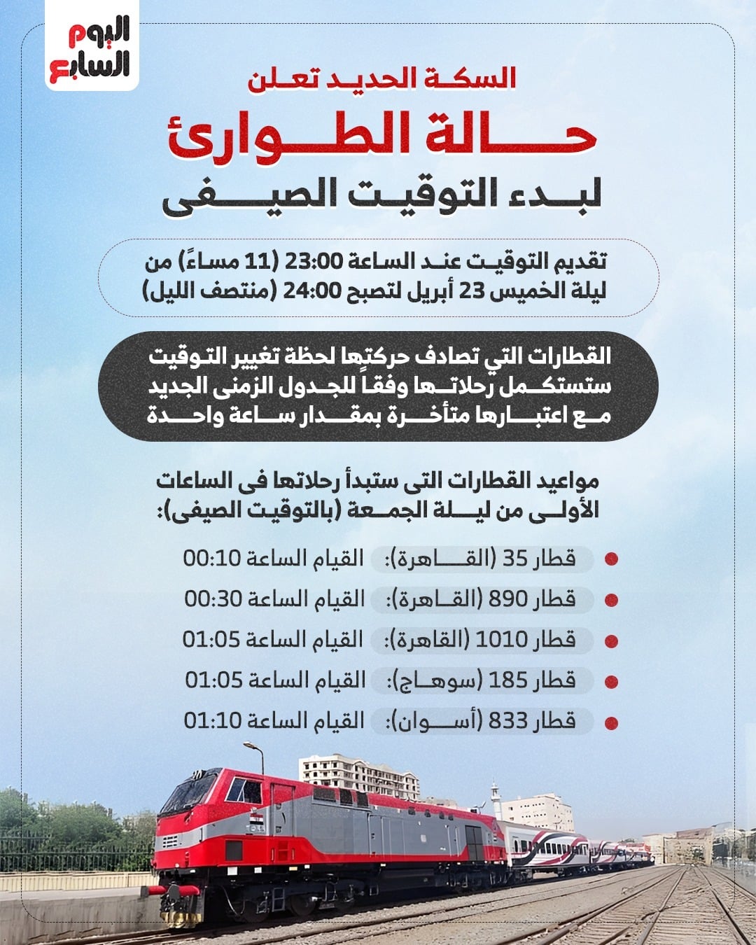 السكة الحديد تعلن حالة الطوارئ لبدء التوقيت الصيفى الليلة.. انفوجراف